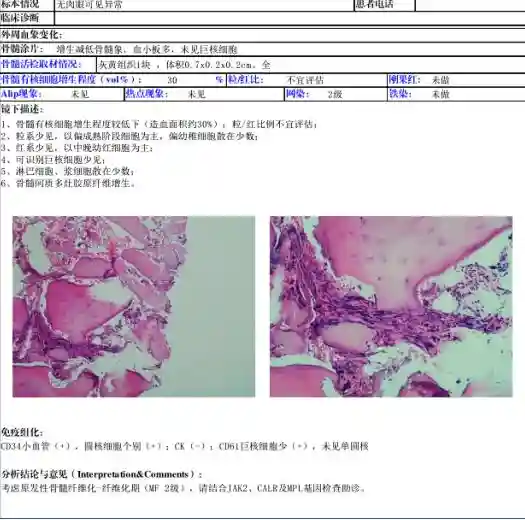 临床最终经北京协和老师会诊诊断为原发性骨髓纤维化(PMF)。