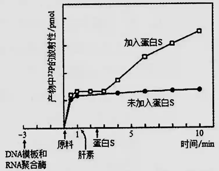 17.科研人员从肿瘤细胞中发现了大量蛋白S,为研究其功能做了如下实验:将DNA模板和RNA聚合酶混合一段时间后加入原料,其中鸟嘌呤核糖核苷酸用32P标记,一起培养一段时间后,加入的肝素可与RNA聚合酶结合,然后再加入蛋白S,结果如下图所示。下列有关叙述正确的是