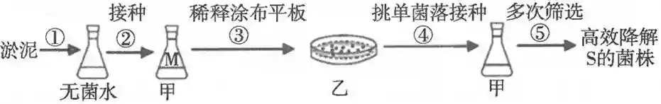 25.(10分)某种物质S(一种含有C、H、N的有机物)难以降解,会对环境造成污染,只有某些细菌能降解S。研究人员按照下图所示流程从淤泥中分离得到能高效降解S的细菌菌株。实验过程中需要甲、乙两种培养基,甲的组分为无机盐、水和S,乙的组分为无机盐、水、S和Y。请分析并回答下列问题: