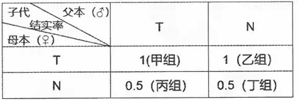 (3)经大量实验发现,N中既有纯合子又有杂合子,但其自交结实率均0.5。由此,推测N育性减半的性状是由(填“亲本体细胞基因型决定的”或“亲本产生的配子基因型决定的”)。