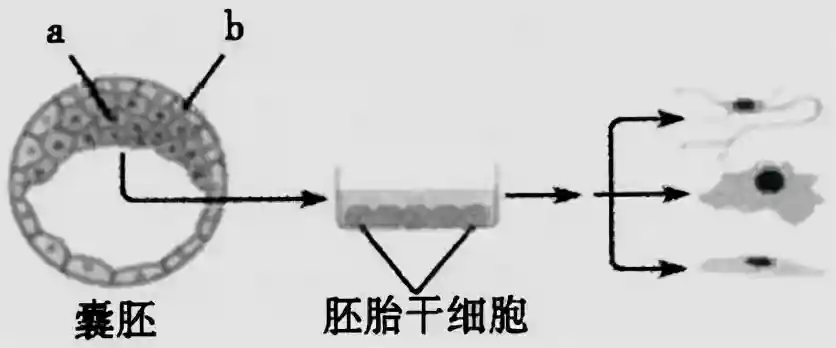 C.用胰蛋白酶将细胞a的膜蛋白消化后可获得分散的胚胎干细胞