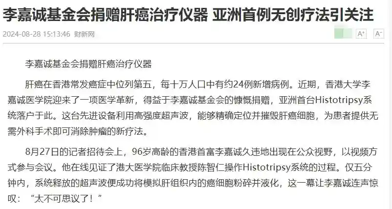更令人惊讶的是,李嘉诚对这一医疗科技突破表现出了极大的热情。